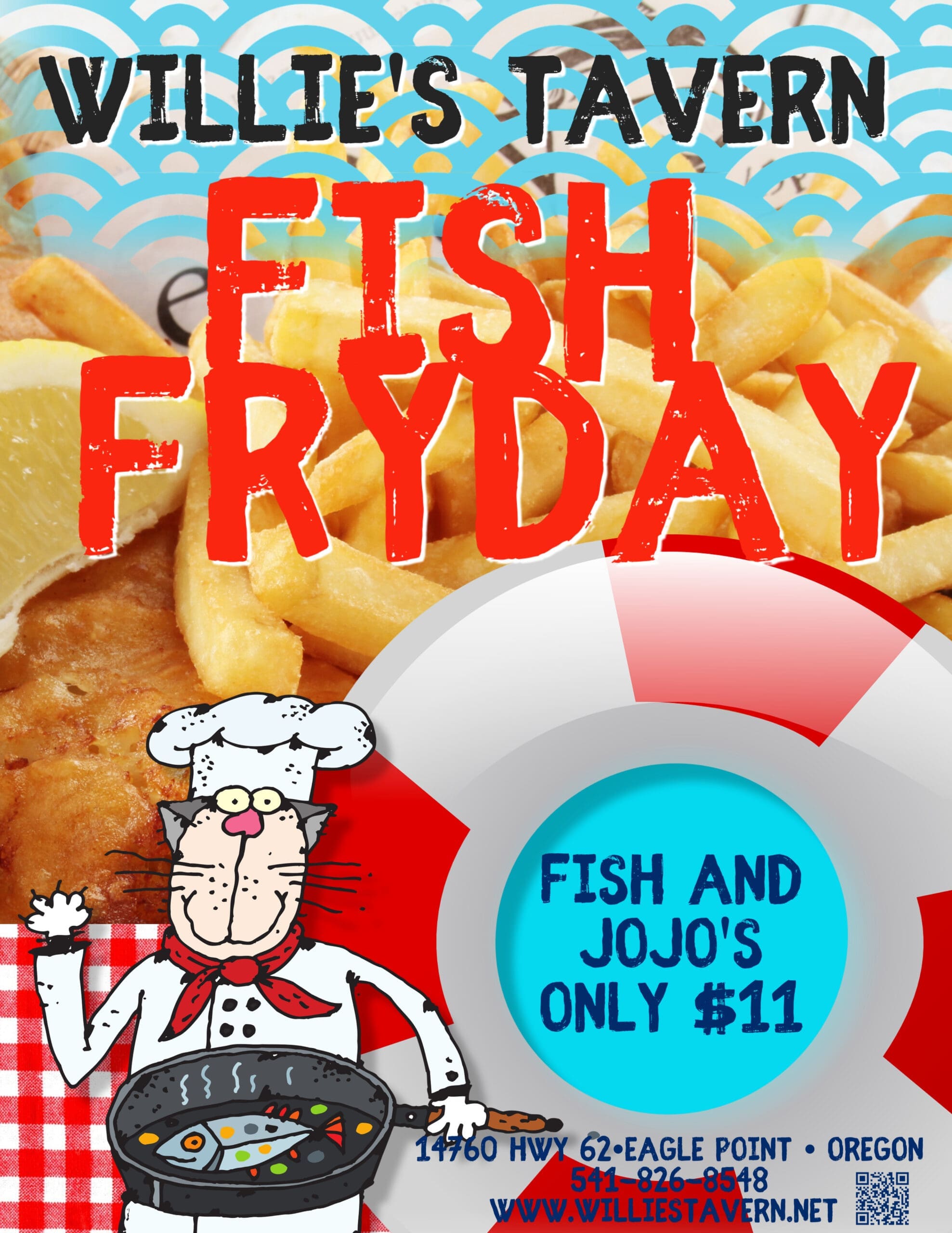 Friday's food special is our 3 piece cod fish filets w/ jojo's for only $11.