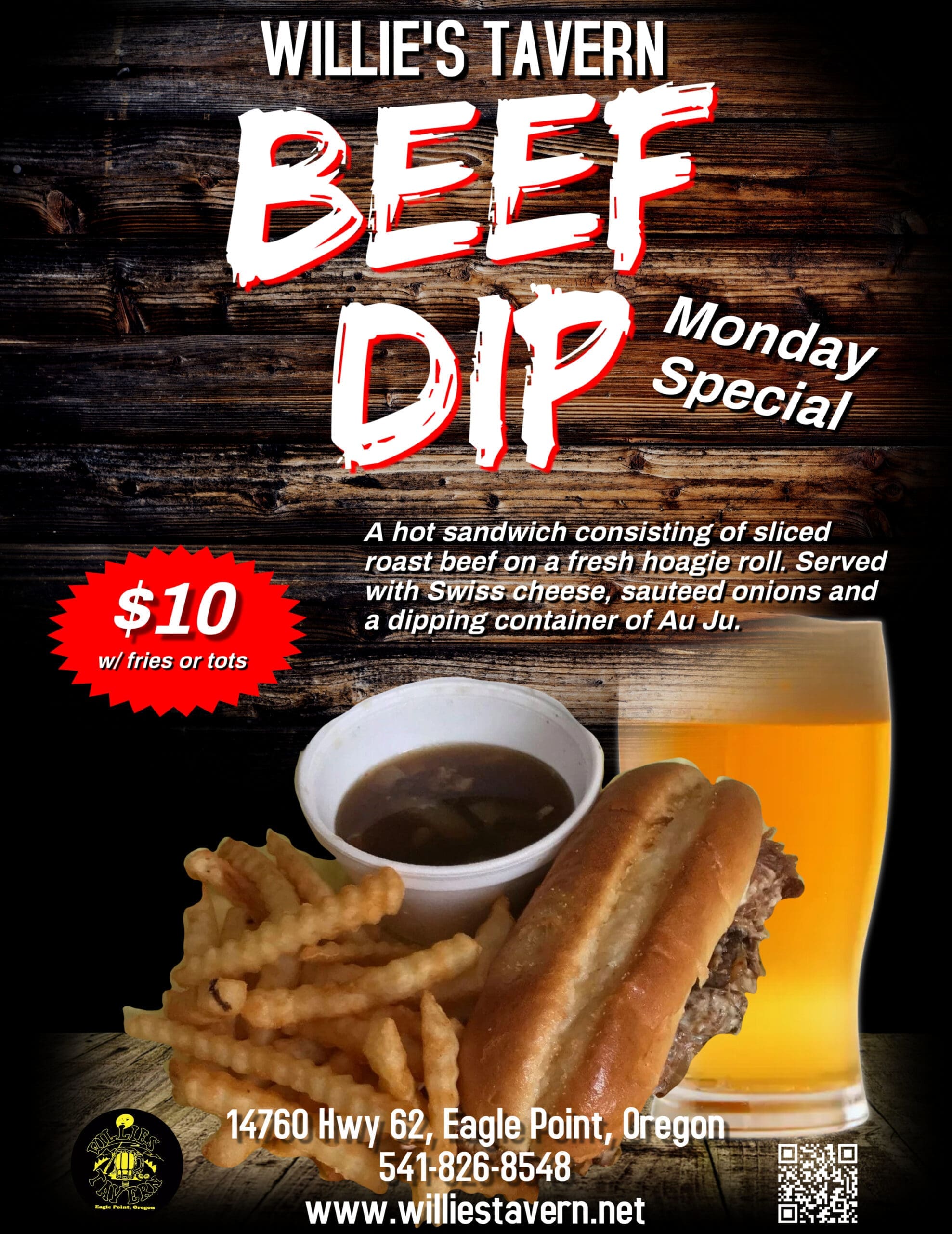 Our Monday food special is our BEEF DIP. A hot sandwich consisting of roast beef on a fresh hoagie roll. Served with Swiss cheese, sauteed onions and a dipping container […]