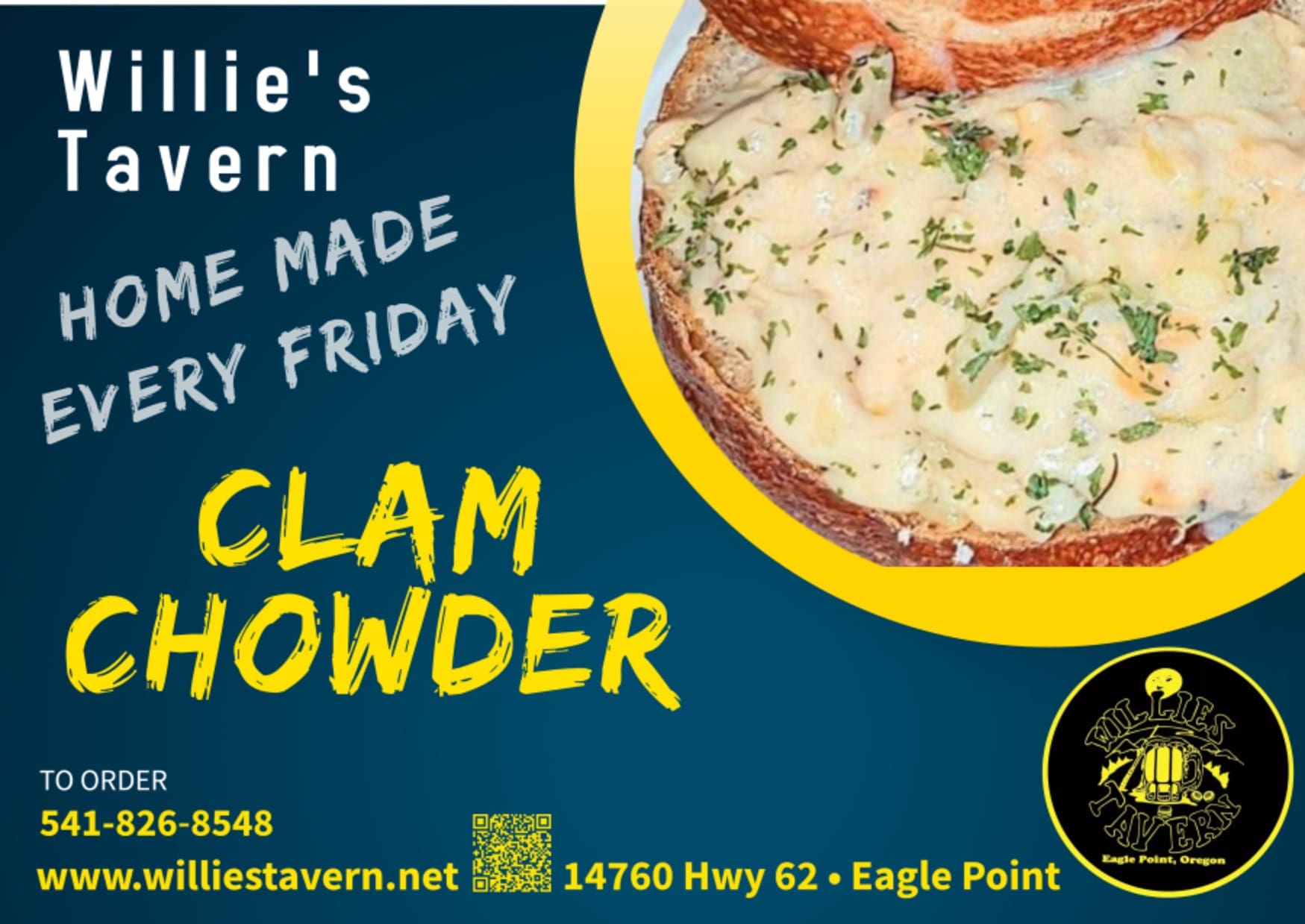 It's time for Willie's Tavern Clam Chowder! Stop in for a bowl today! Homemade every Friday, cups, bowls, and bread bowls available. We also have 3 sizes available for to-go […]