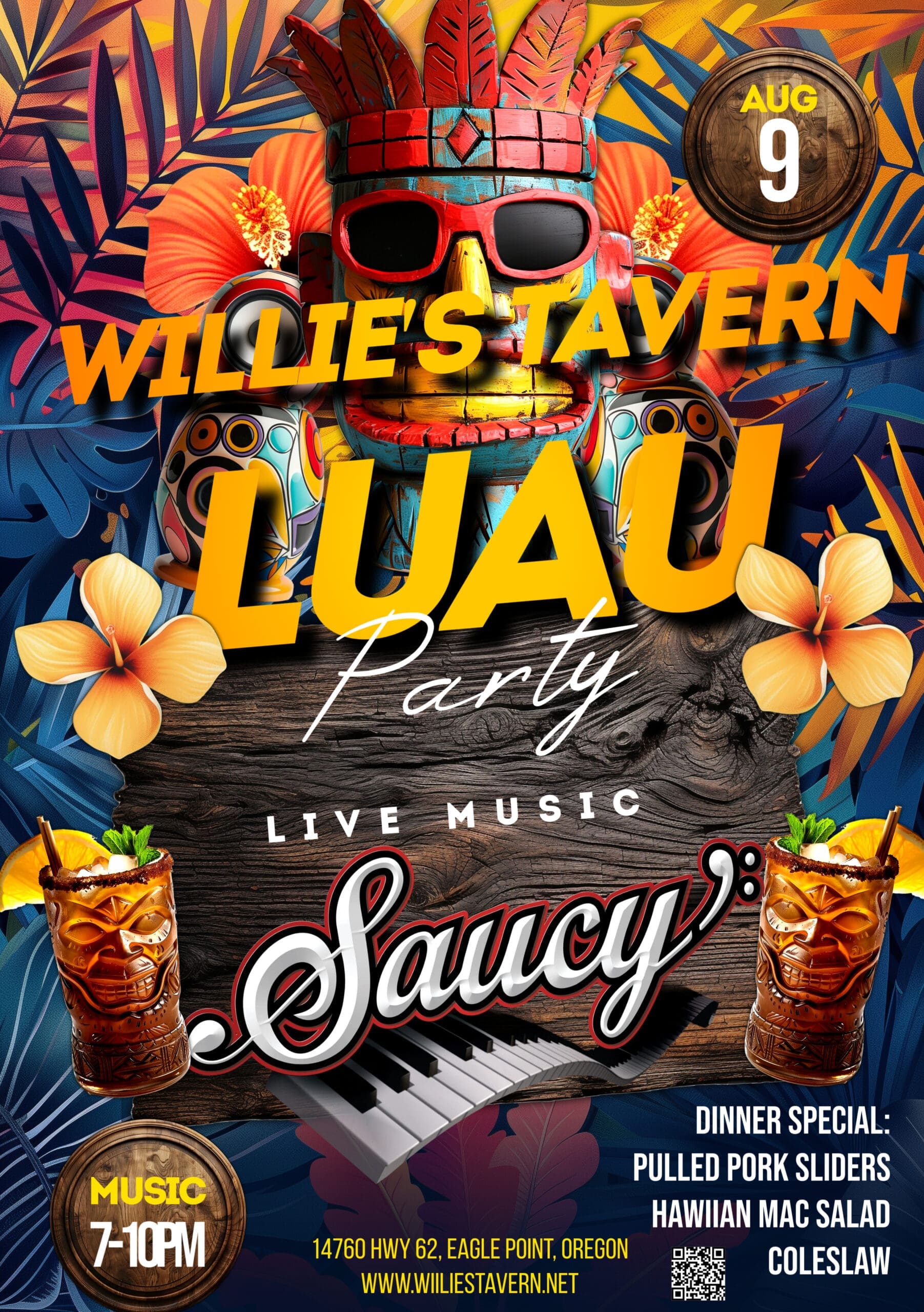 Join us for our Luau Party! Food, Drinks and LIVE MUSIC w/ Saucy. Saucy is a 5-piece Premiere Variety Party Bandand Tribute Act. Wide range of hits and genres.